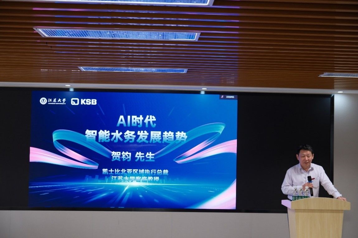 仪式结束后,贺钧教授以《AI时代智能水务发展趋势》为题作学术报告。报告中,他详细介绍了凯士比在智能化运维与预测性维护、AI驱动智慧水务平台、数据融合与全面感知、节能降耗与精准调控等方面的工程思考与应用。报告会内容充实、形象生动,学术氛围浓厚。与会师生表示,报告信息量足、技术性强、引领性好,具有很强的指导性和实践价值。
