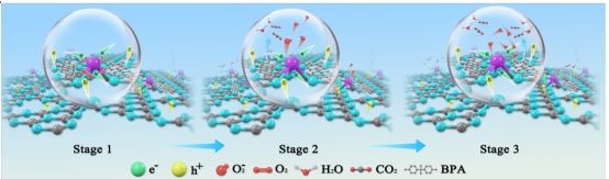 单原子催化剂因其100%的原子利用效率在催化领域备受瞩目。然而,传统对称构型(如M-N4)因内建电场强度不足,导致电子转移效率受限。此外,光催化过程中光吸收的空间异质性、载流子局域化效应以及多活性位点协同作用的复杂耦合,进一步制约了催化性能的提升。针对上述挑战,研究创新性的设计并构筑了一种兼具“非对称配位”与“多活性位点”特性的钴单原子修饰氮化碳催化剂。该催化剂在可见光(λ≥420 nm)照射下,60分钟内即可高效降解双酚A,去除率高达98.6%,其二级反应速率常数较纯氮化碳催化剂提升了114倍。连续流反应测试表明,催化剂在长达10小时的持续运行中,降解效率始终保持在90%以上,展现出优异的稳定性与工业应用潜力。该研究成功实现了催化剂电荷分离效率的突破性提升,并建立了污染物降解的双阶段动力学机制。结合原位X射线光电子能谱(XPS)、原位红外光谱(DRIFTS)及理论计算,深入阐明了非对称活性中心主导的反应机理。该工作从原子尺度阐明了配位对称性调控催化剂电子结构的本质规律,建立了"结构不对称性-载流子行为-反应动力学"的因果关系链,为设计新型环境催化材料提供了理论框架与技术范式。(yl1111永利集团)