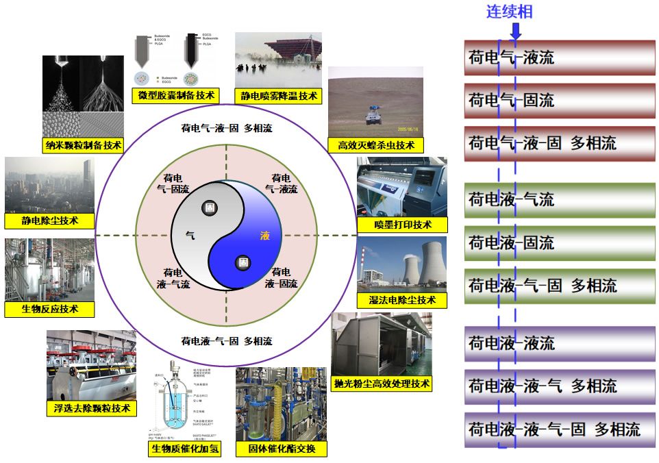 The technology of charged multiphase flow and environmental control has been successfully applied in many large-scale projects in China, such as the Three Gorges Dam Project, the Large-scale locust plague control in Xinjiang grasslands, the stadium of Beijing Olympics, and the Shanghai Expo Park.