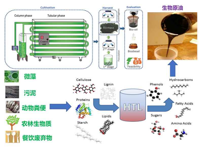 ● Hydrothermal conversion of biomass to produce biocrude and biochar